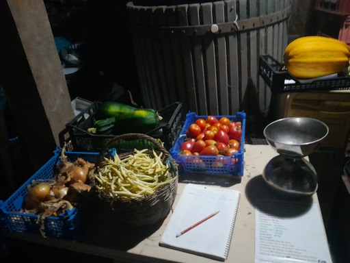 La cabane à légumes : un libre service avec des légumes de la ferme. Nous faisons la cueillette chaque matin et mettons dans la cabane : tomates, blettes, concombres, courgettes, aubergines, potirons, noix..... en fonction de la saison. Le principe est simple et basé sur la confiance : vous choisissez et pesez vos fruits et légumes, puis vous notez ce que vous avez pris sur le cahier et payez lors de votre départ.
